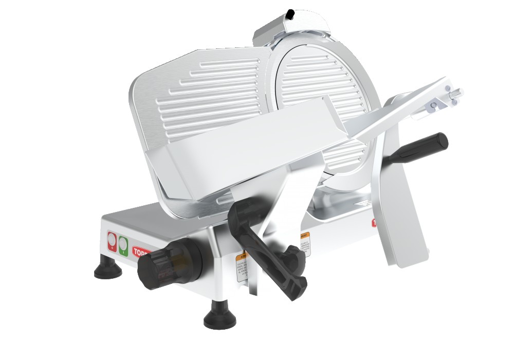 Rebanadora para carnes frías, verduras y vegetales que se adapta especialmente a negocios y restaurantes. Con cuchilla de 300 mm impulsada con transmisión de banda y motor de 1/3 HP logra cortes uniformes con gran facilidad.